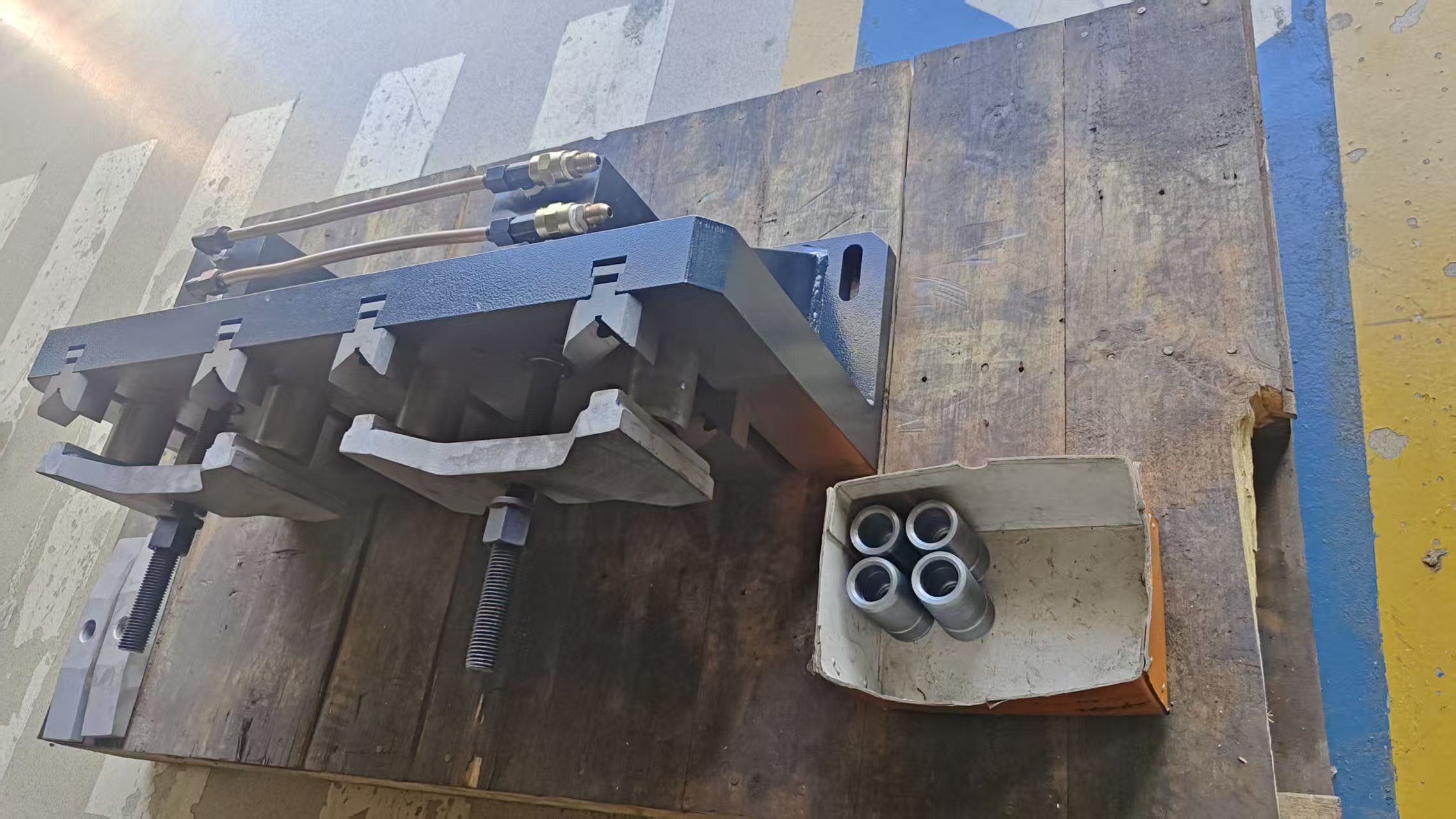感谢泉州xx重型工程机械有限公司惠购4工位支重轮+拖轴两用液压工装
